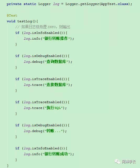 如果设置级别为 INFO,则优先级高于等于 INFO 级别(如:INFO、WARN、ERROR)的日志信息将可以被输出,小于该级别的如 DEBUG 和 TRACE 将不被输出。
