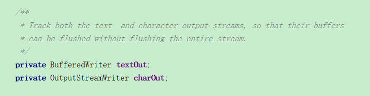 4、调用write方法,将输出信息写入BufferedWriter(字符缓冲区,输入流),默认大小为8192字符,写完之后,flushBuffer,缓冲区flushBuffer之后,OutputStreamWriter(字符输出流)对象charout,charOut.flushBuffer(),刷新输出流,在控制台输出内容。最后out.flush,刷新整个输出流。