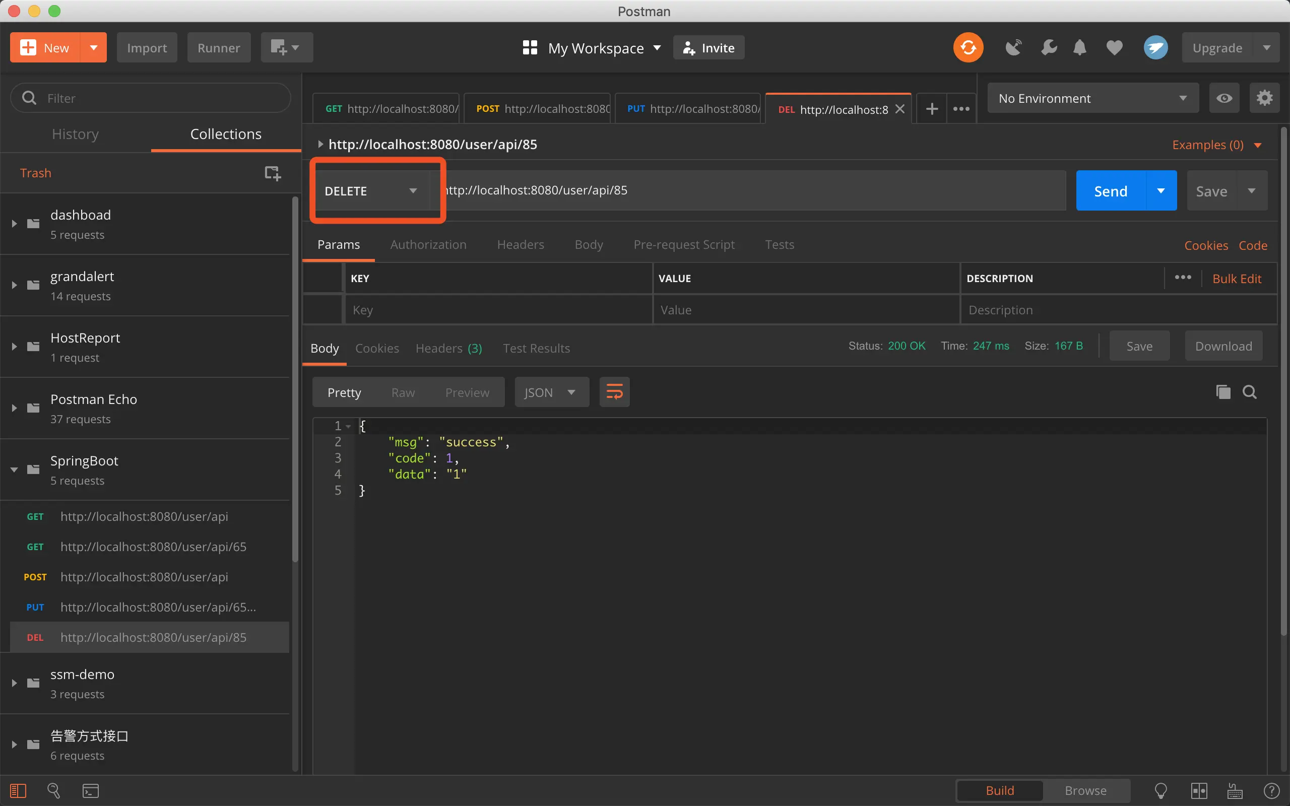 HTTP DELETE请求/user/api/85 来删除id为85的用户