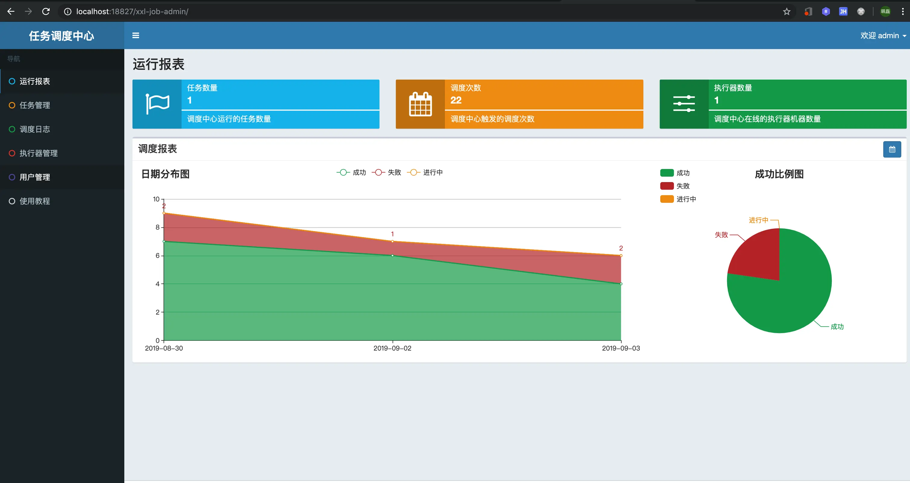 访问http://localhost:18827/xxl-job-admin 账号:admin 密码:123456 看到如下页面即搭建成功