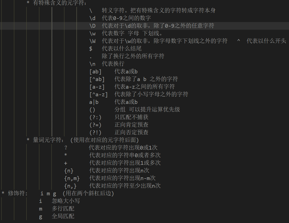 像^、$、\d、+这些在正则里表示特殊含义的符号,叫“元字符”。