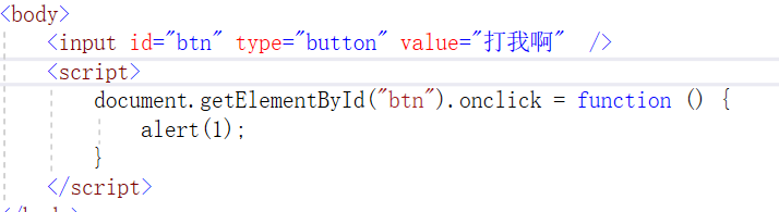 - 第二种,在js标签元素里,先获取元素,在设置事件