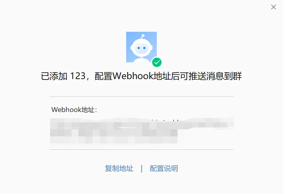 添加机器人后,点击复制地址,会得到如下的一串URL