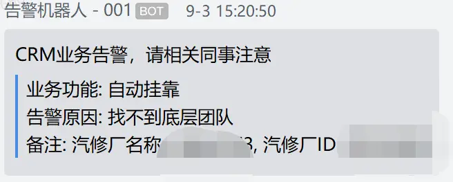 JR老哥体验了一下,反馈说每次通过点击进入邮件的方式查看自动挂靠失败的原因会觉得有点麻烦,然后向我推荐了另外一种方式,通过企业微信群聊的机器人,把告警信息发到群上,这样便一目了然了。