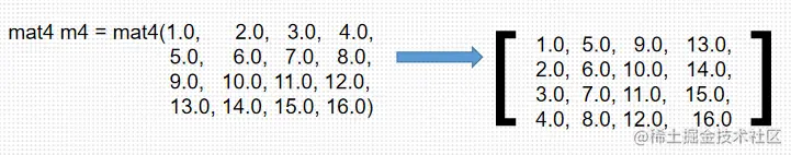 mat4(1.0,2.0)// mat4对象要有16个元素
