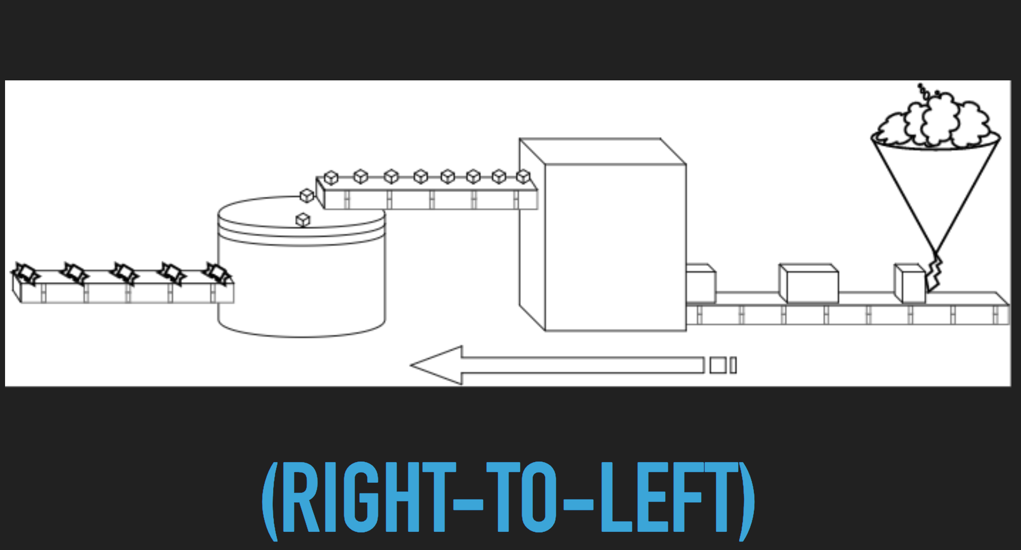 为什么有两个方向呢?我也不知道,只能说一个大概的理解。当我们有一组函数是这样调用的A(B(C())),那么他们的执行顺序是 — C => B => A。表面上来看他们的执行顺序是从右到左的,但是其实是从内到外的。所以其实compose的参数顺序是符合真正的函数复合调用的书写顺序的。但是为了更加迎合我们的人脑思考,就有了Pipe,因为大脑一般会思考一个从左到右的执行顺序。