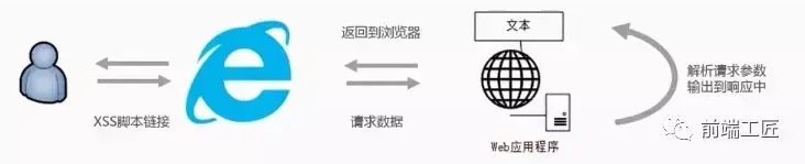 这种类型的XSS代码出现在url中,作为用户输入提交到服务端,服务端解析后将当前代码返回到浏览器,浏览器解析执行。