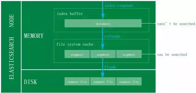 然而默认情况文档从Indexing Buffer到文件系统缓存(即Refresh操作)是每秒分片自动刷新,所以这就是我们说ES是近实时搜索而非实时的原因:文档的变化并不是立即对搜索可见,但会在一秒之内变为可见。