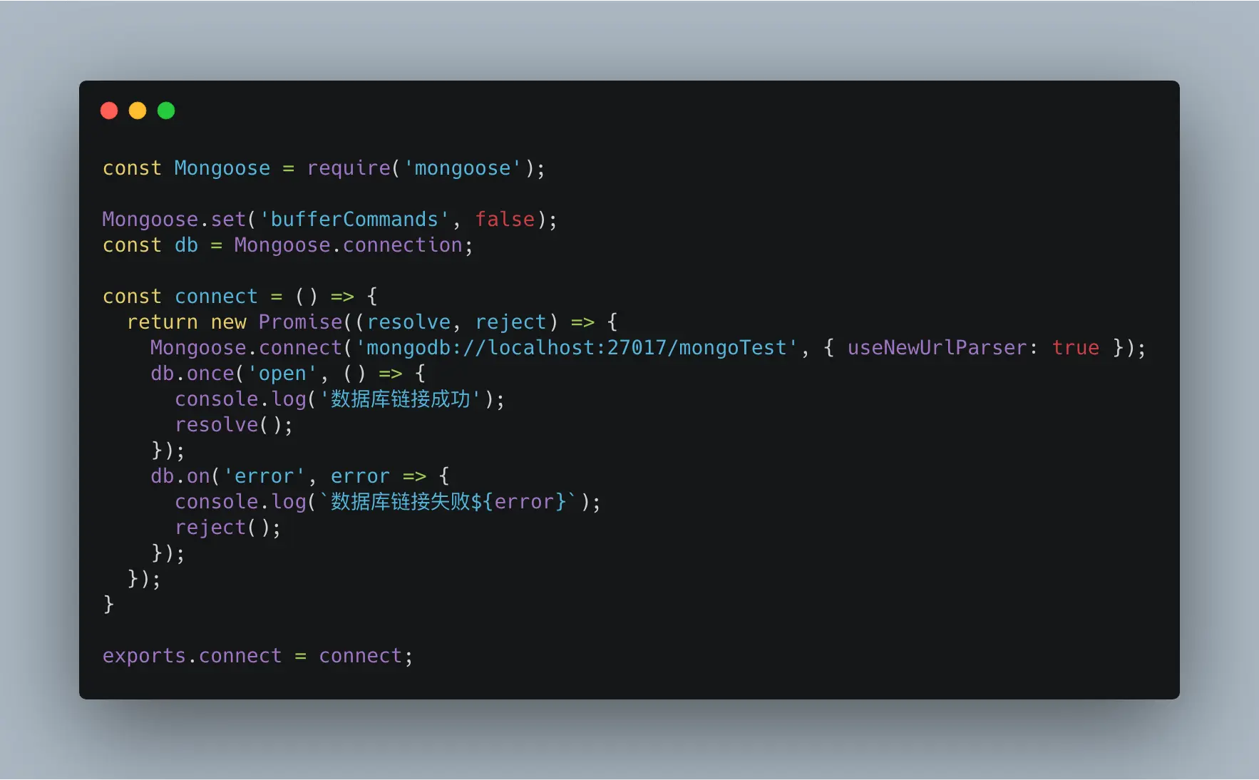 数据库,创建database文件夹,创建index.js,导出连接数据库方法