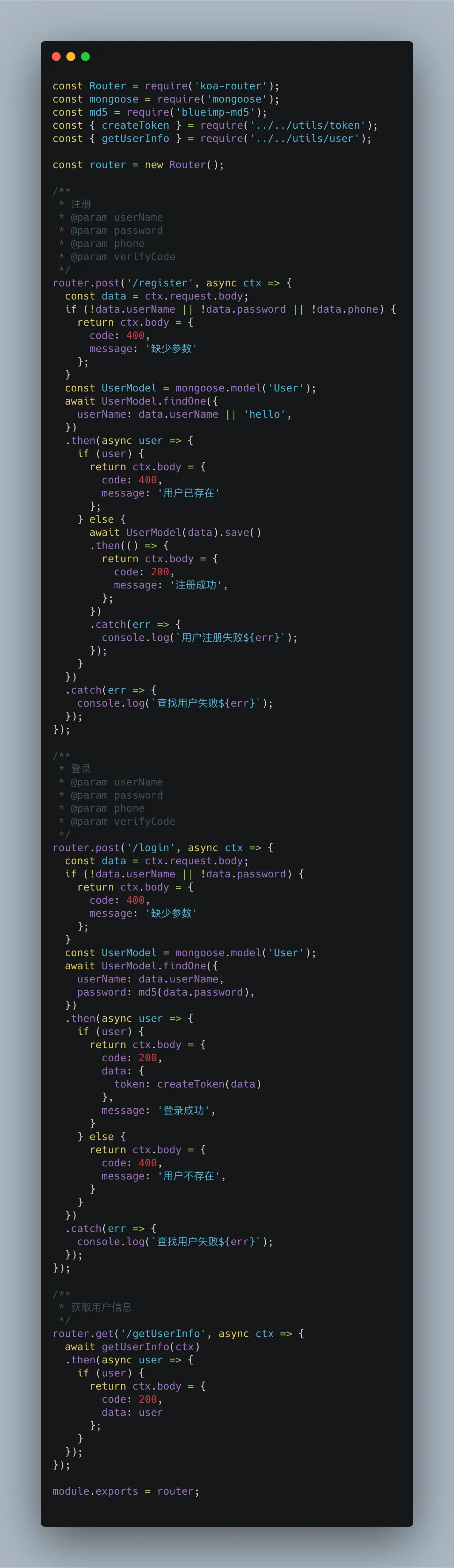 yarn add koa mongoose