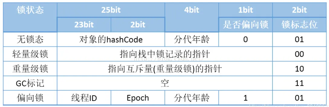 由于对象头信息是与对象所定义的信息无关的数据,所以使用了非固定的数据结构,以便存储更多的信息,实现空间复用。因此对象在不同的状态下对象头的存储信息有所差别。