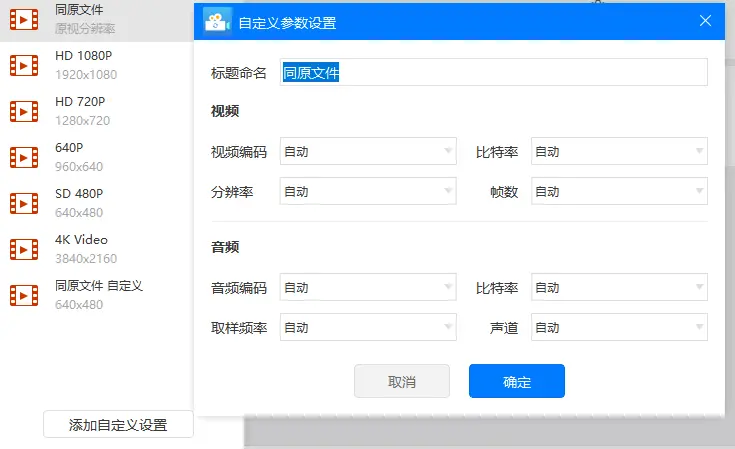 第四步,然后选择好视频格式之后,本来可以直接确定然后转换格式的。但是考虑到有些人可以需要设置其他的参数,所以这里也是多说几句吧。点击格式自定义设置然后进入,在里面可以随便选择设置参数都是不成问题的。