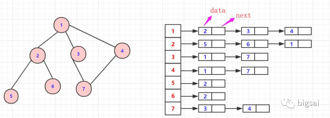 就拿上述的图来说,我们使用邻接表来实现遍历。