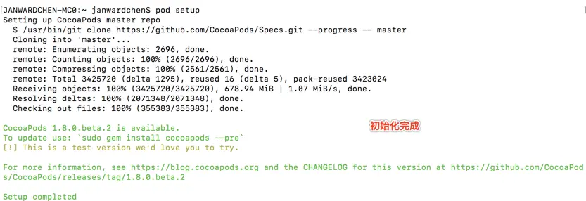 查看 CocoaPods 版本,检测是否真的初始化成功