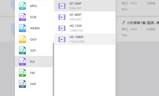 3、然后呢就必须要选择设置一个格式了。我们这里选择转换成flv格式,flv格式比较好,兼容性也不错的。而mkv格式可以将字幕和视频分开。然后就选择一个分辨率数值然后就可以准备了。