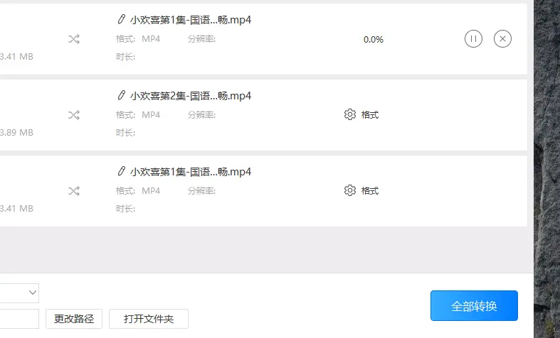 5、最后呢就可以转换格式了。需要等待软件转换至100个百分点就可以了。然后就可以点击打开或者打开文件夹就能直达保存位置播放视频了。很是方便的呢。