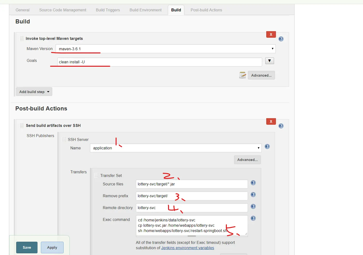 /root/.jenkins/workspace/lottery-svc/lottery-svc/target/lottery-svc.jar,所以此处配置为lottery-svc/target/*.jar - 步骤2的配置前缀