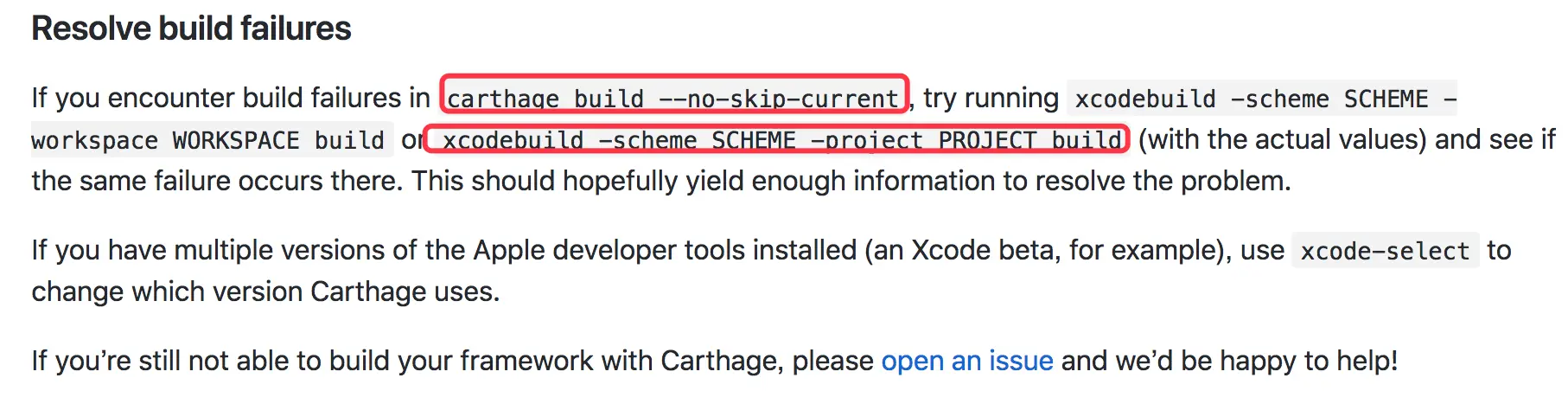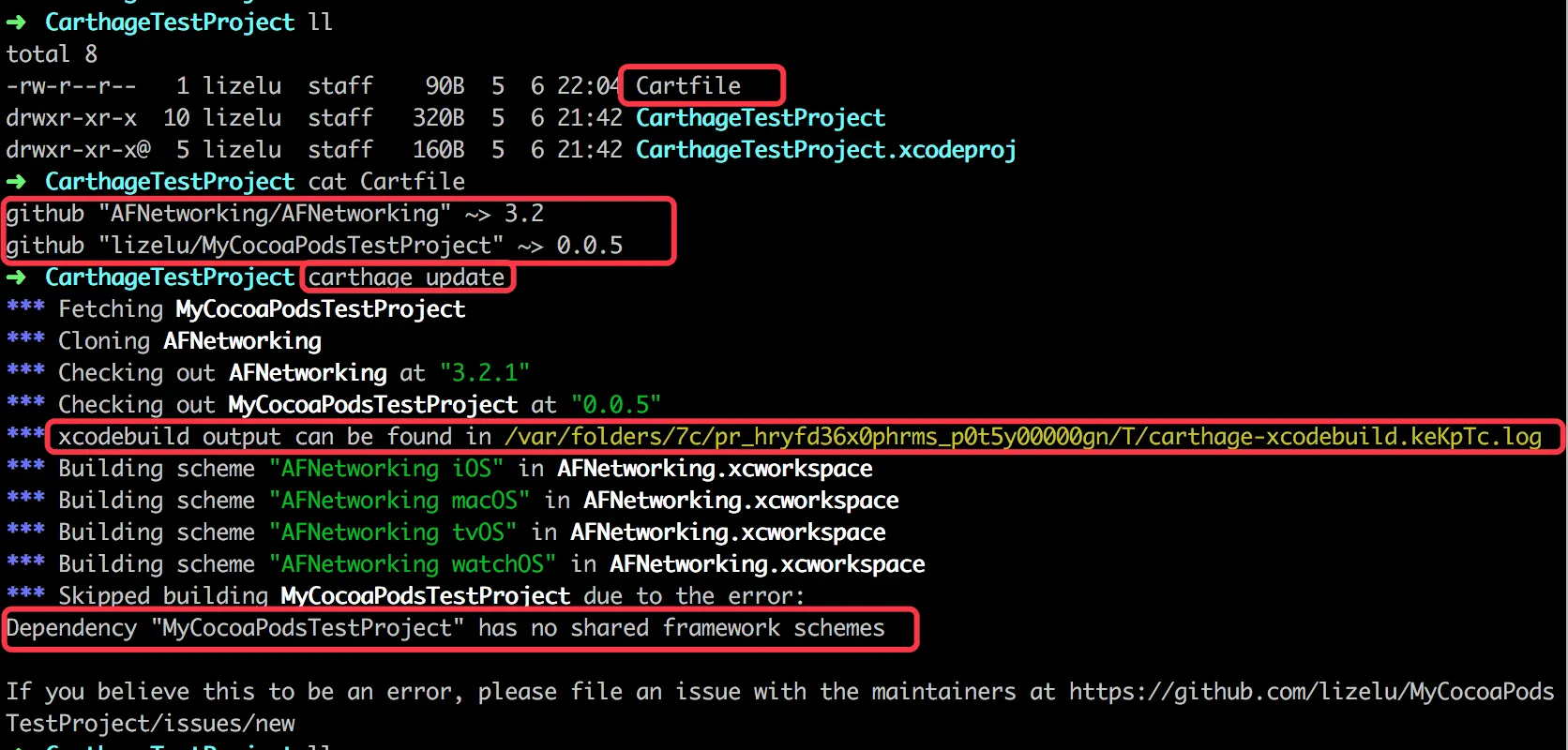 在我编译的时候遇到了上述的错误,不过Carthage的github主页给出了相关的解决方案,即使用xcodebuild进行编译,如下所示: