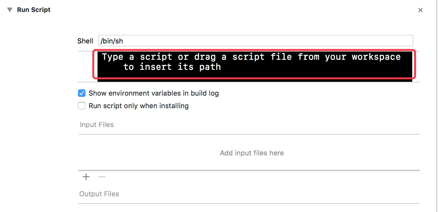 下方是刚刚添加的Run Script,稍后会进行配置。