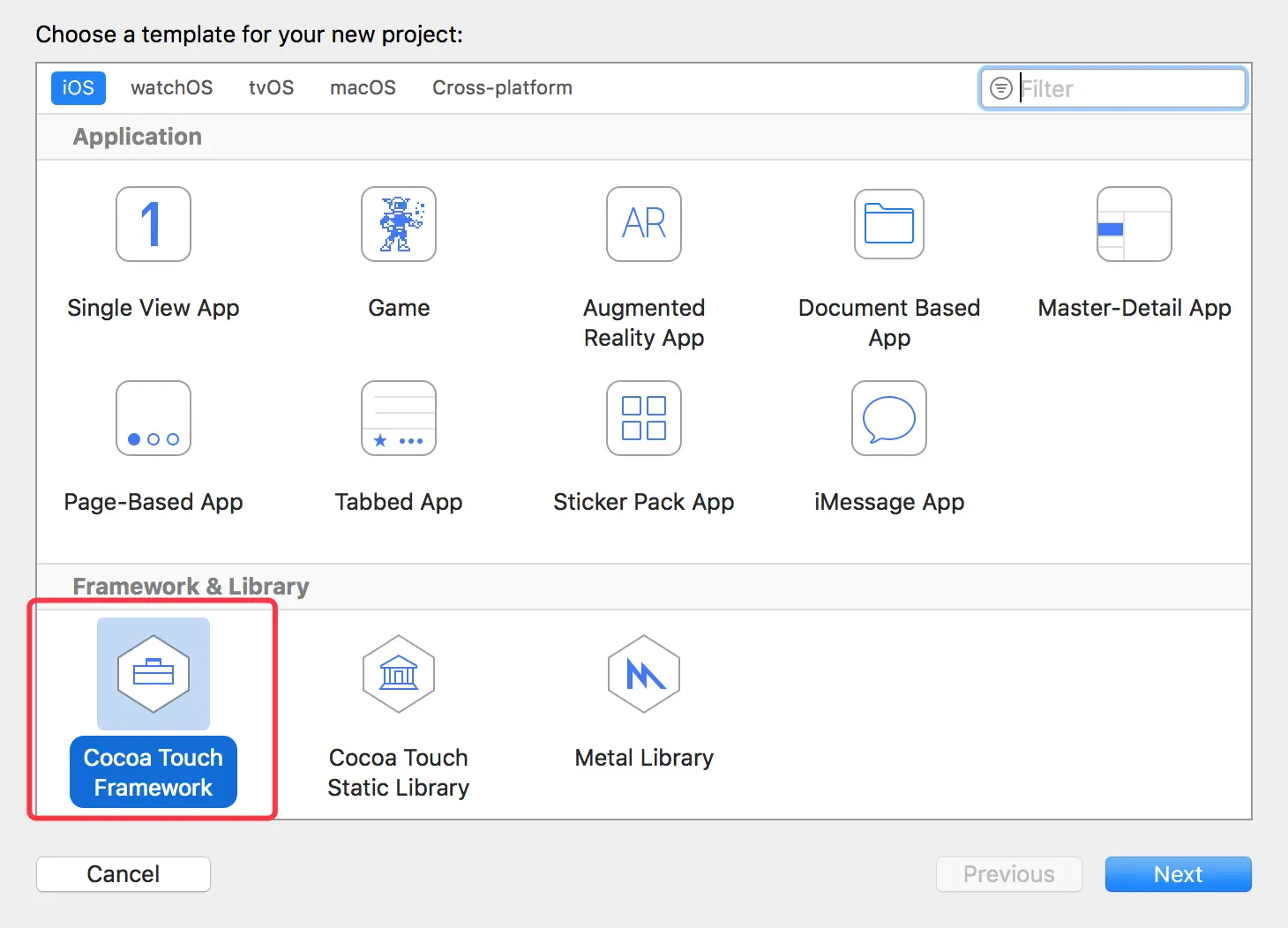 首先在我们工程所对应的github目录下方创建一个Cocoa Touche Framework的工程。如下所示: