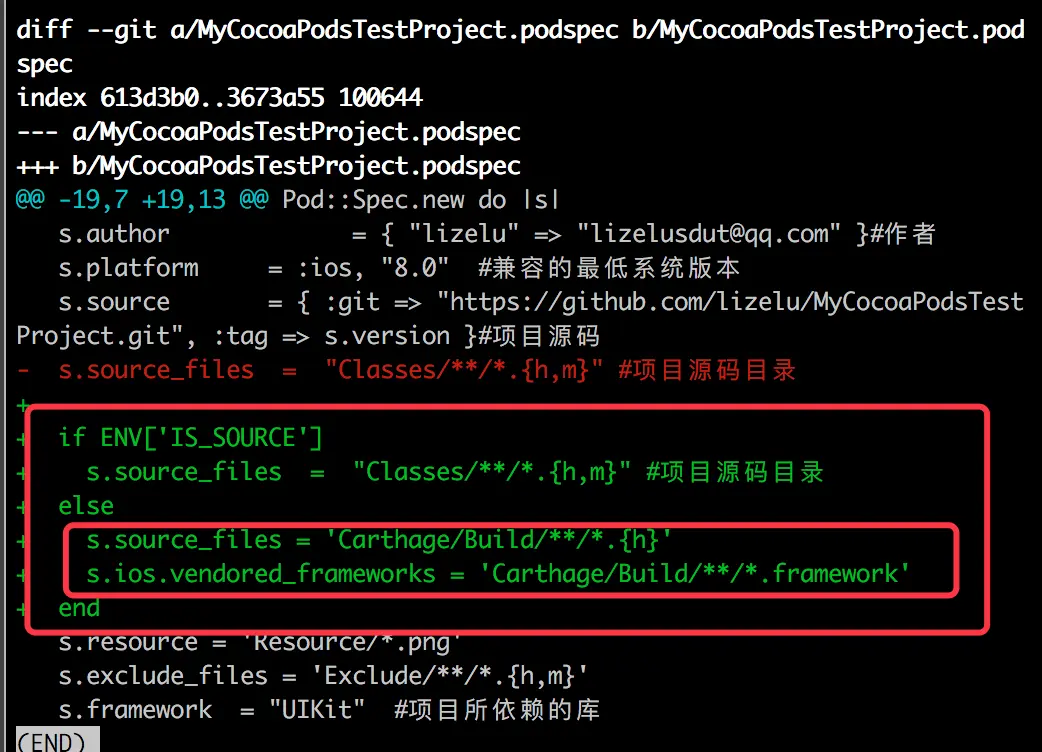 我们可以在CocoaPods的Podfile中添加相关的定义,具体如下所示。在else的语句块中就是加载Carthage编译的framework。