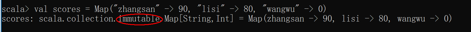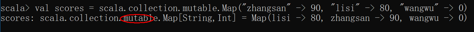 val scores = scala.collection.mutable.Map ("zhangsan" -> 90, "lisi" -> 80, "wangwu" -> 0)