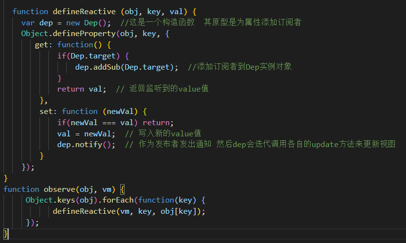 实现mvvm的双向绑定,是采用数据劫持结合发布者-订阅者模式的方式,通过Object.defineProperty()来劫持各个属性的setter,getter,在数据变动时发布消息给订阅者,触发相应的监听回调。就必须要实现以下几点: