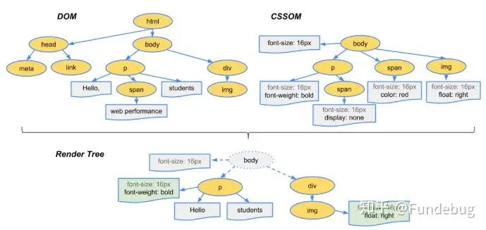 当我们生成DOM树和CSSOM树以后,就需要将这两棵树组合为“渲染树”