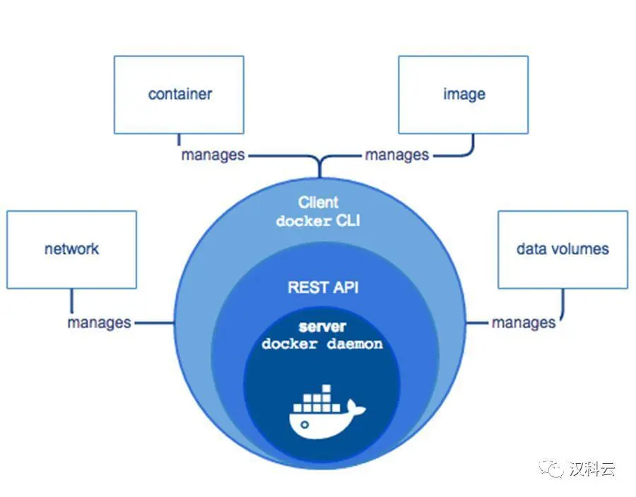 服务端是一个名为dockerd守护进程,用来监听REST API请求并管理Docker对象,比如镜像、容器、存储卷及网络等。