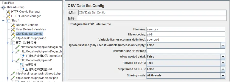 1.回到我们的参数化,我们先用CSV Data Set Config先来实现这个小目标先.