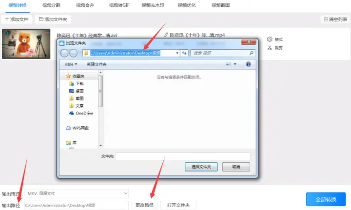 3、在输出格式下方的输出路径的输入框中写入转换后的mp4文件保存到电脑的路径,或者点击更改路径按钮选择mp4文件的保存路径。