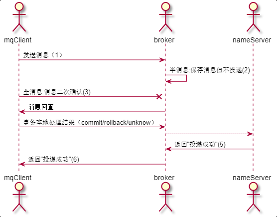 以带事务方式投递的消息,正常情况下的处理流程是这样的