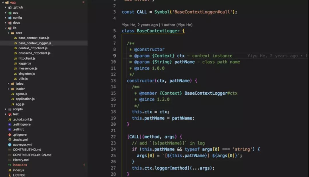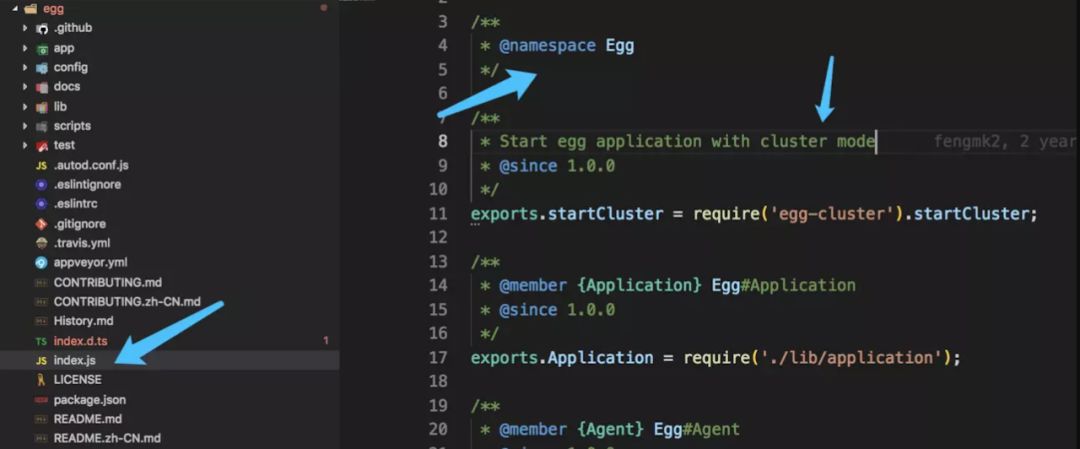 从图中可以看到 egg.js 的入口文件的注释特点是简单整洁。