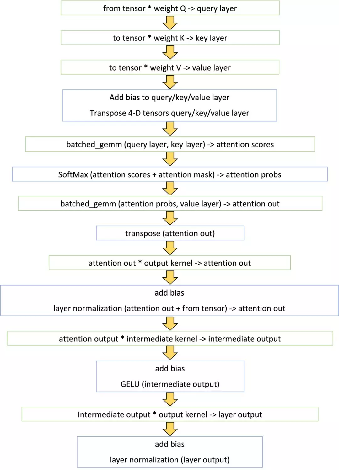 除去矩阵乘法,作者把剩下的op合并成了4个(图中蓝色框):