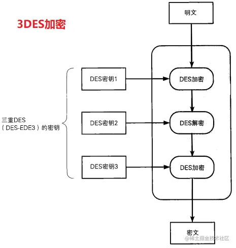 - 3DES是以64比特的明文(比特序列)为一个单位来进行加密的