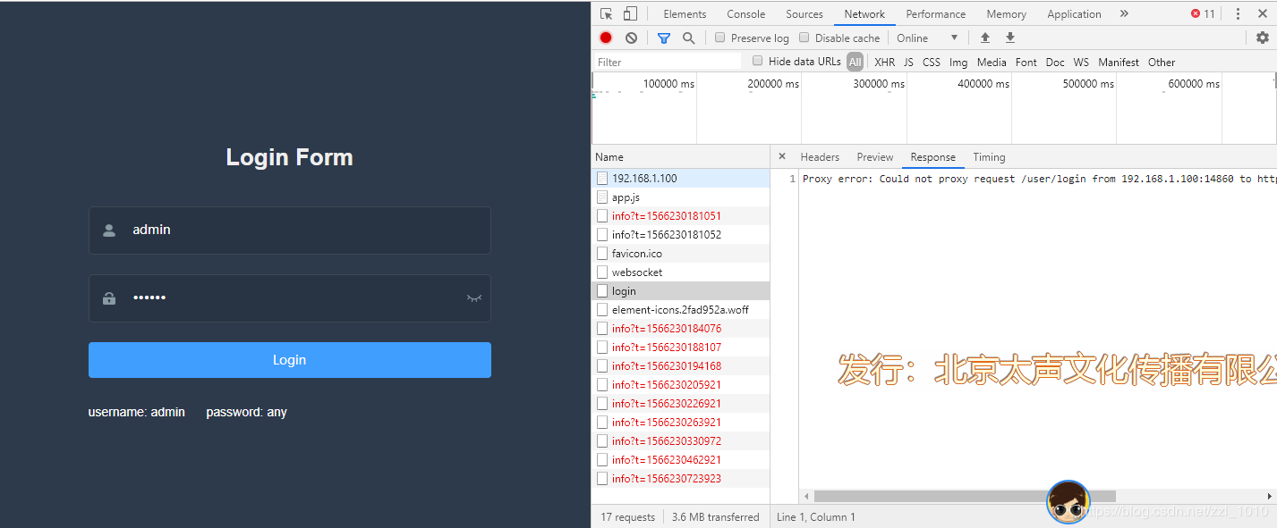找了很多资料,基本上都是代理跨域的问题。最后发现npm install安装问题,重新执行,执行过程比较慢,如果卡住(请检查是否已经安装git,git安装:www.cnblogs.com/wj-1314/p/7…