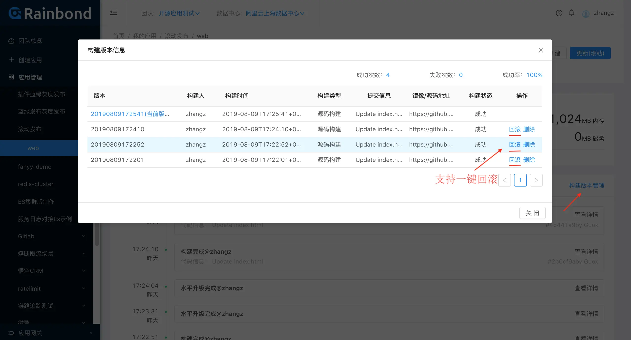 - 此时再查看构建历史记录,可以回滚到构建成功的任意版本