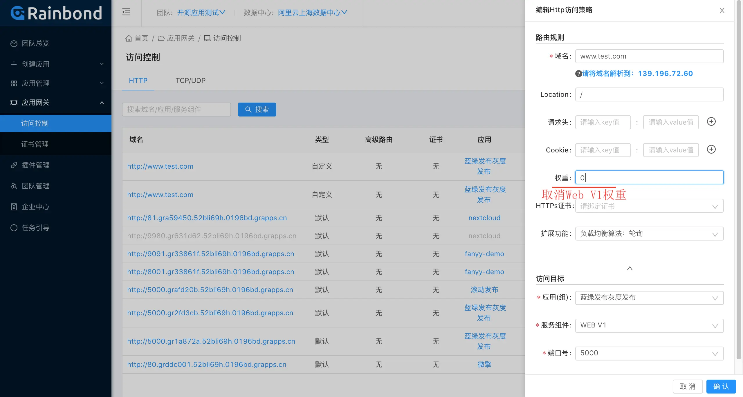 关于Rainbond的应用A/B测试操作方案请参阅 A/B测试实践