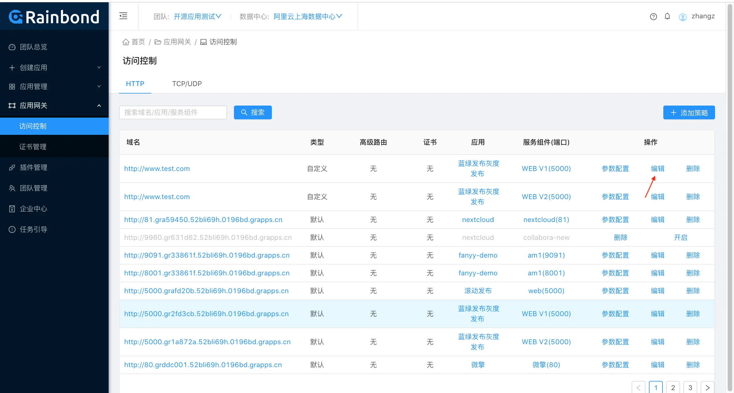 依然通过 应用网关 -> 访问策略添加以下两个HTTP访问策略: