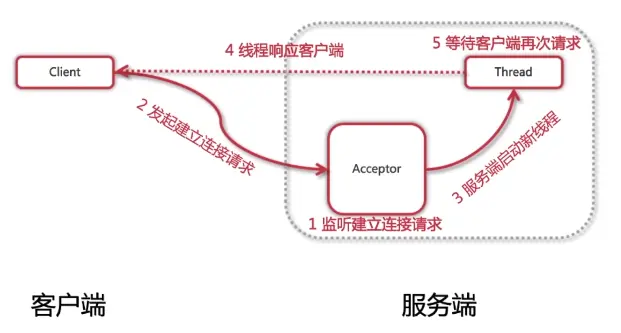 (3)server一旦请求到client的请求之后就会开启一个线程去处理。