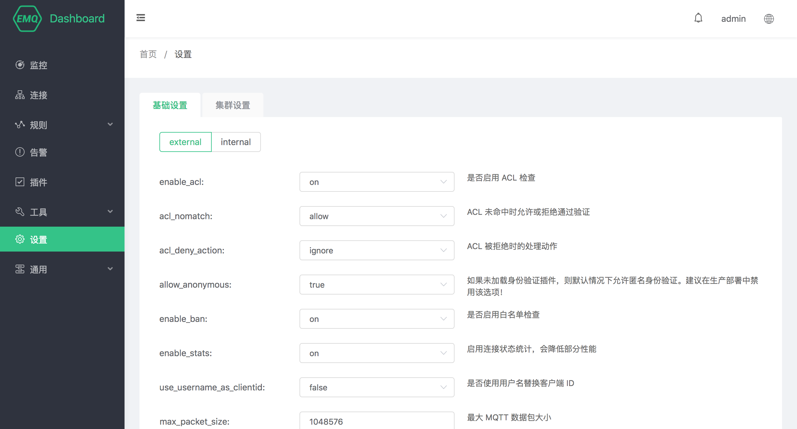 - 提供插件功能管理界面:目前 Dashboard 对插件的管理仅限于进行配置,众多插件如 emqx_auth_clientid、emqx_auth_username、emqx_configs 除了基础配置外还有相应的业务功能和使用方式,EMQ 将逐一在 Dashboard 中适配开发,提供插件的配置与使用界面;