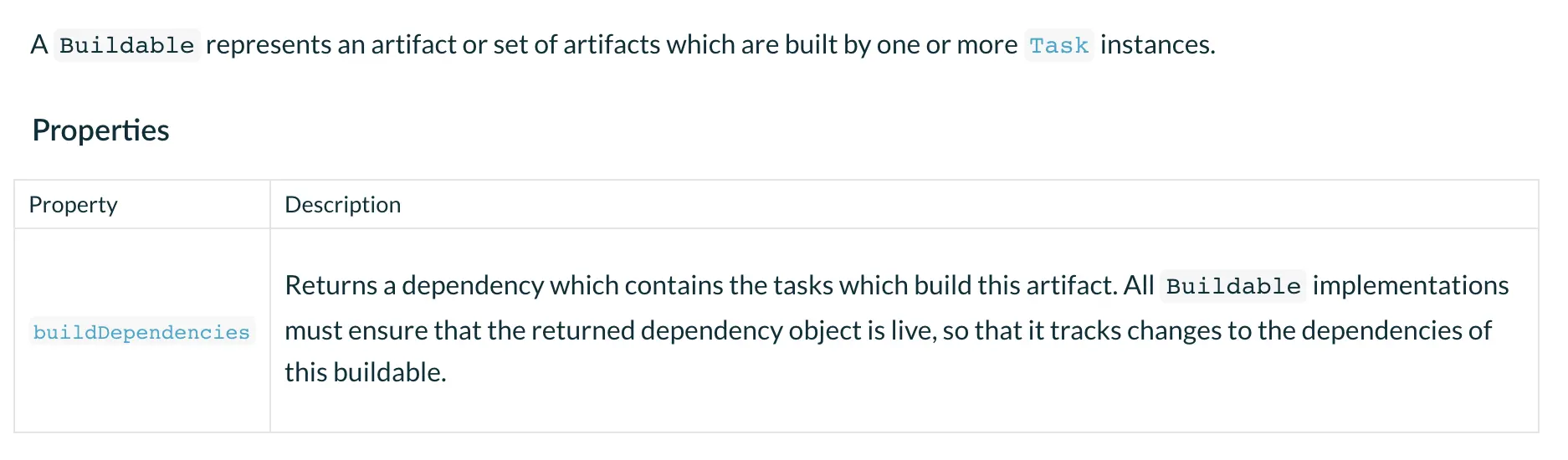 Buildable表示着很多Task对象生成的产物。它里面只有一个方法。