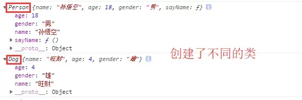 不同的是构造函数习惯上首字母大写。 调用方式的不同,普通函数是直接调用,而构造函数需要使用new关键字来调用。