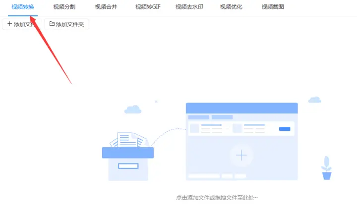 1、首先要开启转换器,此时我们所看到的是打开界面,而我们需要的是把其中功能栏的功能设置为视频转换功能。