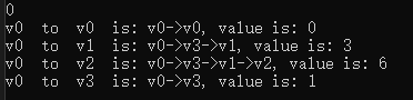 cout << "v" << begin << " to " << "v" << i << " is: " << dis[i].path << ", value is: " << dis[i].value << endl;