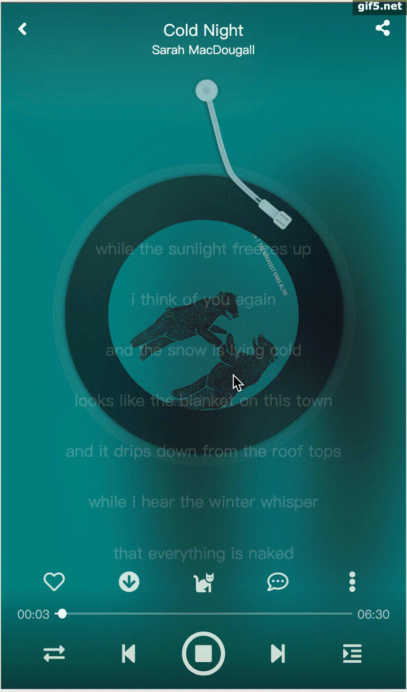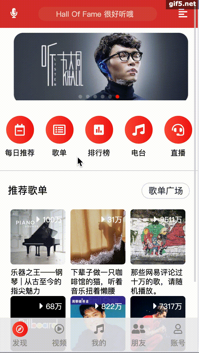 用于个人练手,开发周期比较长,属于有空就做一点,参照网易云移动端ios版本,开发中尽量去还原ios版本中的交互效果。页面逻辑中没有太多路由,以store去控制组件的挂载、销毁