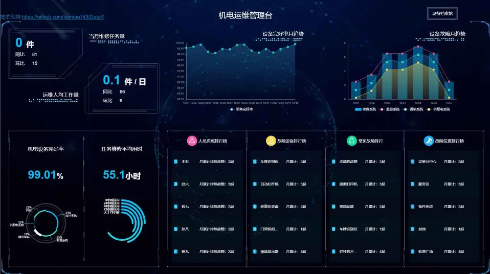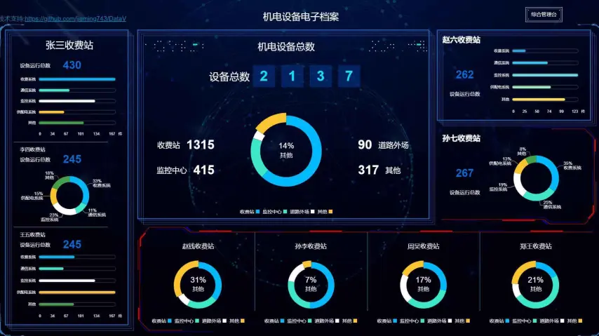 由于阿里DataV收费,接口维护略有麻烦,同时也基于兴趣和学习,自己从依赖到组件独立开发了一个组件库,从效果上跟阿里的DataV很像。
