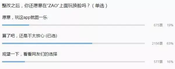 然而,一份“整改之后,你还愿意在“ZAO”上面玩换脸吗?”的网络调查显示,大多数网友选择了“算了吧,还是不太放心”。