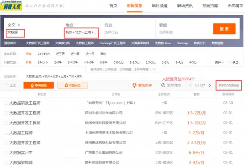 大数据岗位30804个: