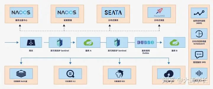 依托 Spring Cloud Alibaba,只需要添加一些注解和少量配置,就可以将 Spring Cloud 应用接入阿里微服务解决方案,通过阿里中间件来迅速搭建分布式应用系统。